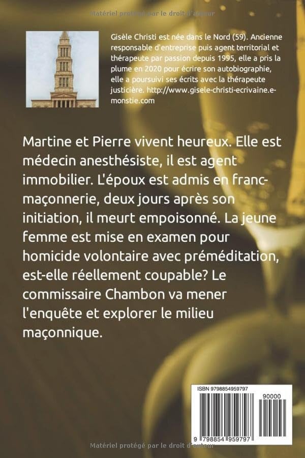 Martine et Pierre vivent heureux. Elle est médecin anesthésiste, il est agent immobilier. L'époux est admis en franc-maçonnerie, deux jours après son initiation, il meurt empoisonné. La jeune femme est mise en examen pour homicide volontaire avec préméditation, est-elle réellement coupable ? Le commissaire Chambon va mener l'enquête et explorer le milieu maçonnique.